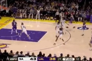 文班隔扣布朗尼!这一扣球的最高高度3.4米 文班滑翔距离2.2米!