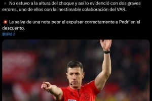 西媒Archivo VAR在赛后为本场比赛主裁判格拉多打分:“灾难级表现,2.5分。”